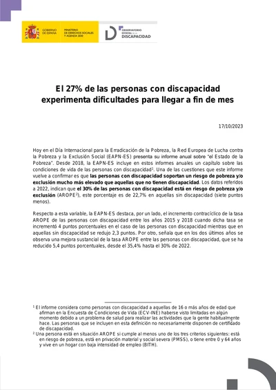 Novedades Últimos documentos publicados https://observatoriodeladiscapacidad.info https://observatoriodeladiscapacidad.info/@@site-logo/logo.webp Novedades Últimos documentos publicados Las personas con discapacidad cobran 4.485 euros menos que el resto de las personas trabajadoras El 27 por 100 de las personas con discapacidad experimenta dificultades o muchas dificultades para llegar a fin de mes El 27 por ciento de las personas con discapacidad experimenta dificultades para llegar a fin de mes El Observatorio Estatal de Discapacidad elabora un completo informe con propuestas para la mejor regulación de la Tarjeta Europea de Discapacidad < 4 elementos anteriores 1 ... 8 9 10 11 (actual) 12 13 14 ... 67 4 elementos siguientes >